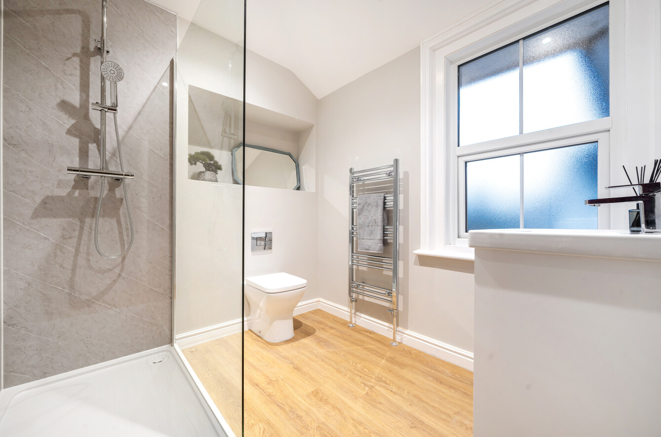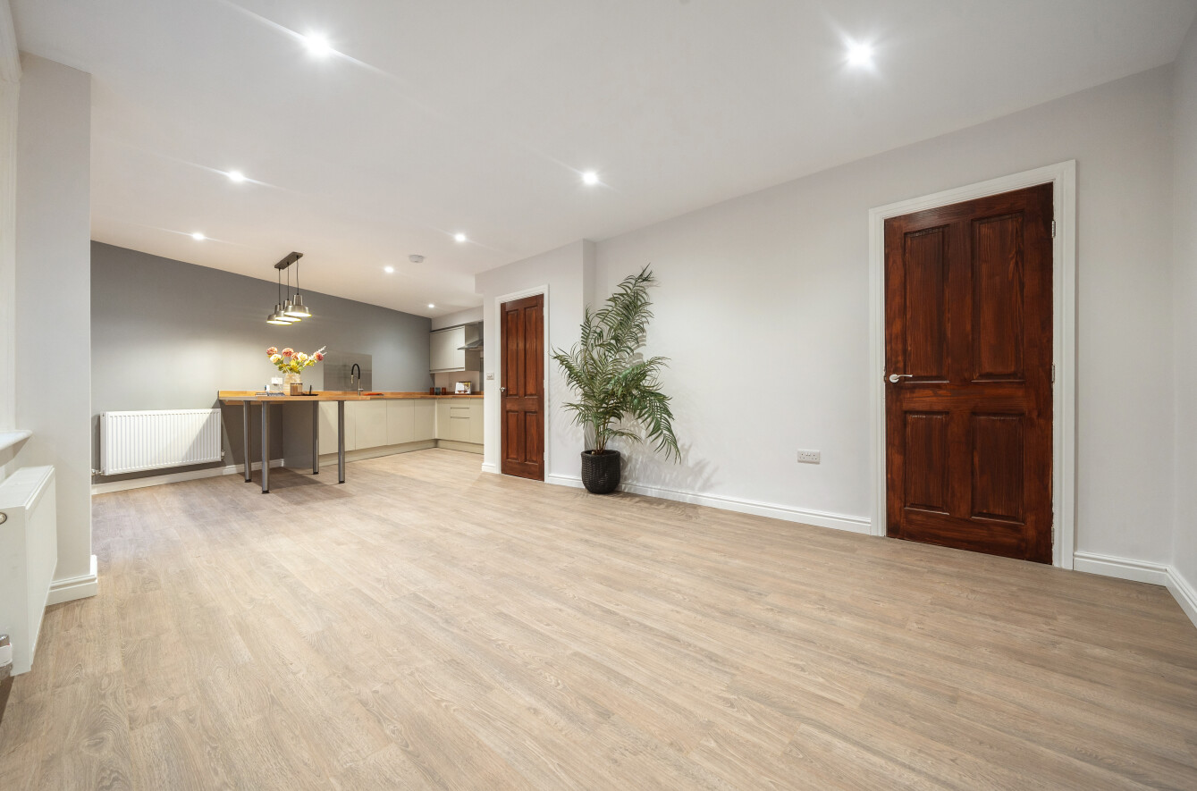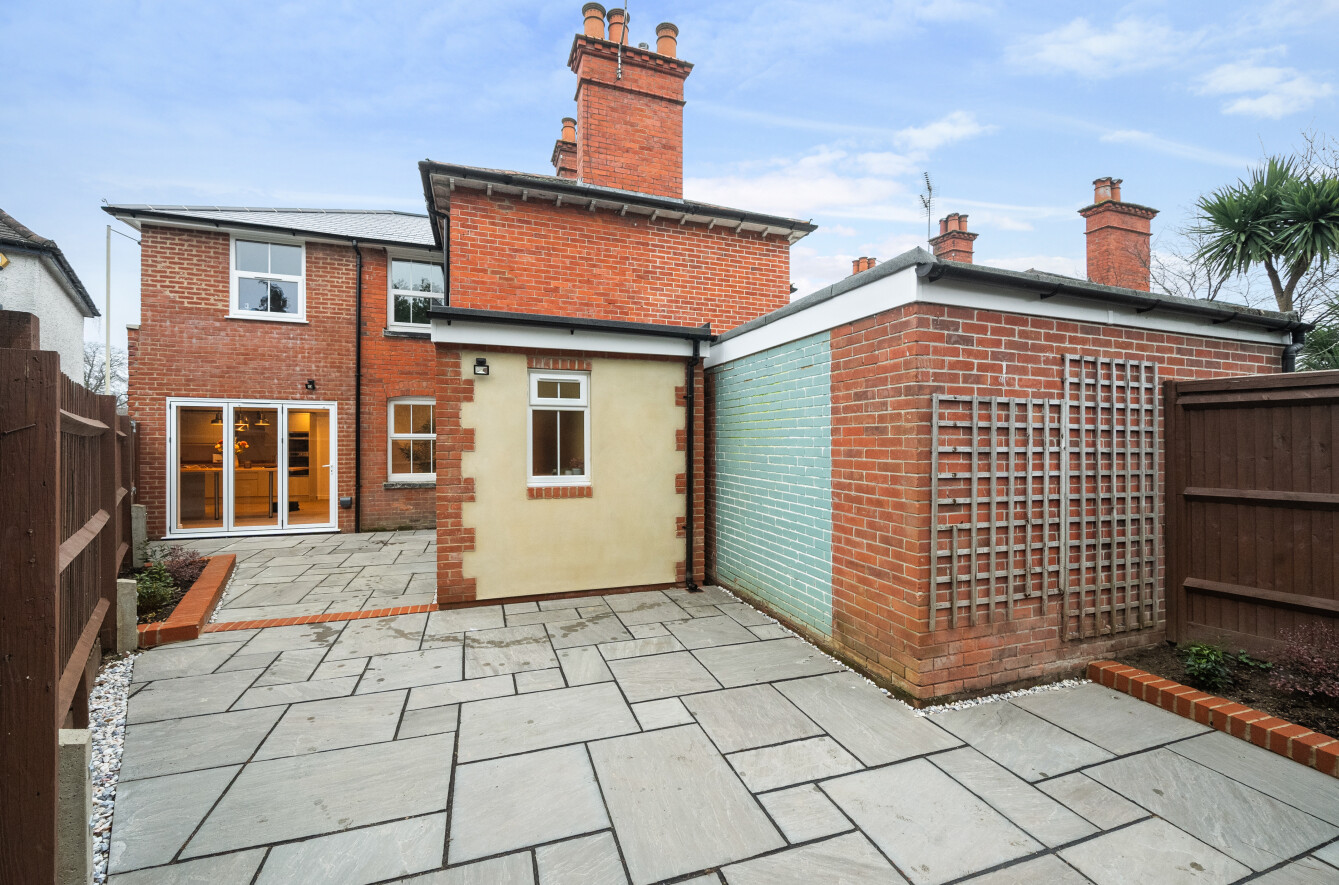 We purchased Elm road as a semi-detached quasi-corner plot adjoining an alleyway to a popular primary school at the rear of the house. The proximity of the side access required careful planning of construction schedules and structures for the double-storey side extension to ensure uninterrupted access. The garage conversion allowed us to open the kitchen and diner up into a large open plan living area featuring bi-folding doors overlooking the back garden’s new patio and single storey extension.